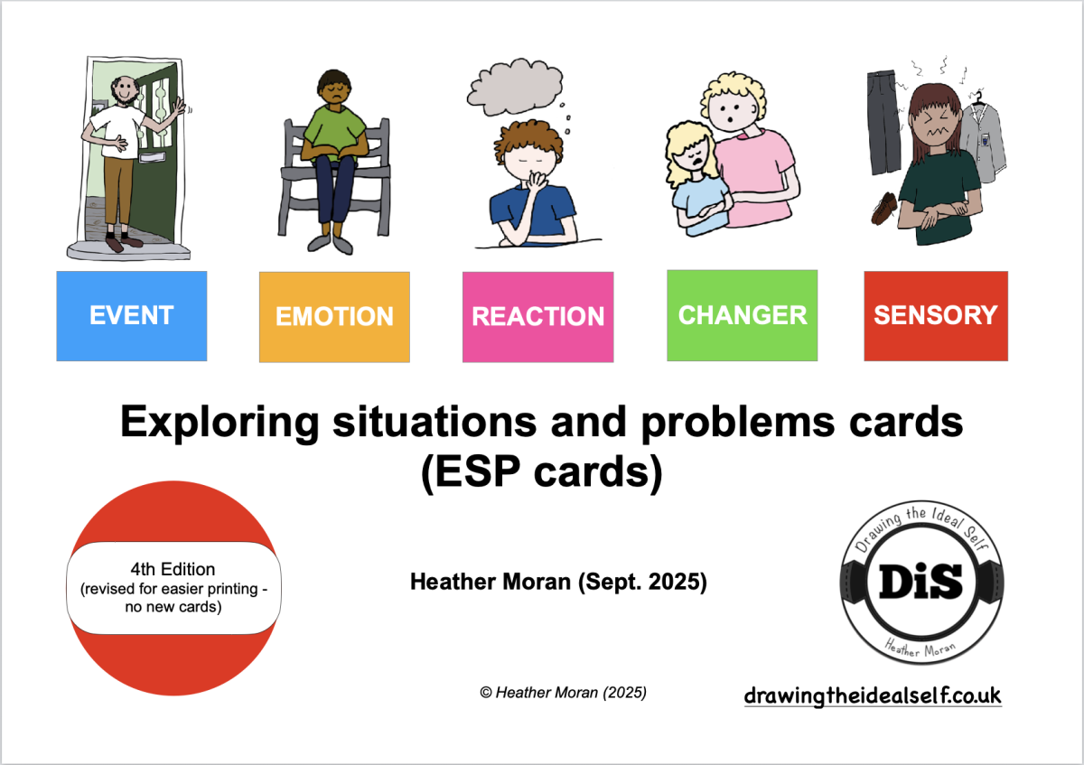 The ESP Cards are designed to build a storyboard of a child’s day, making it easier to talk about and explore those events that are often problematic, and to notice that there are times that usually go well. I hope that these cards will also support accessibility of therapy and interventions for children who are neurodivergent, including autism, ADHD and dyslexia.